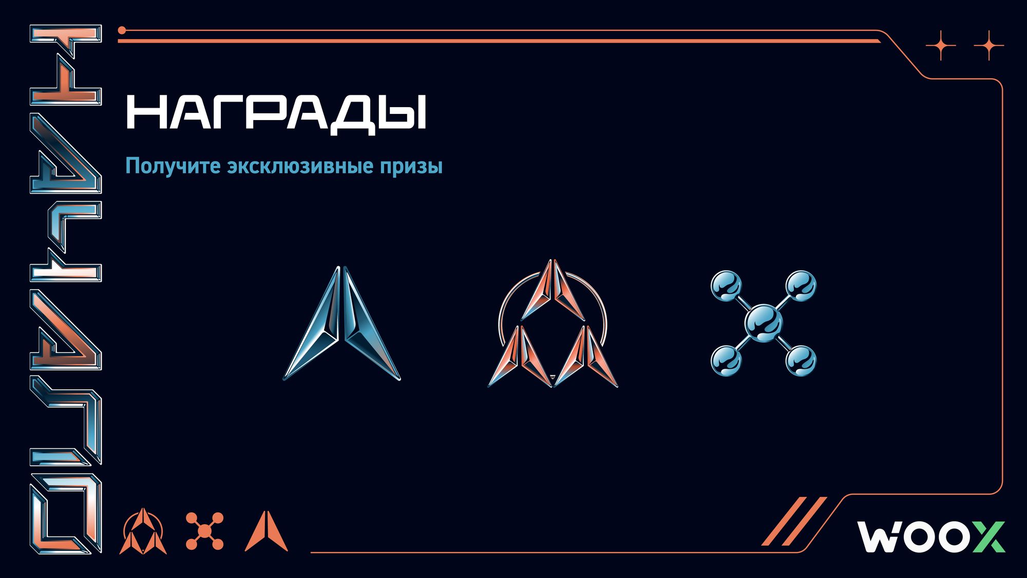 Трейдеры могут принять участие в 3 отдельных кампаниях, общий призовой фонд которых состоит из токенов WOO на сумму $11,000 и эксклюзивных бейджей.