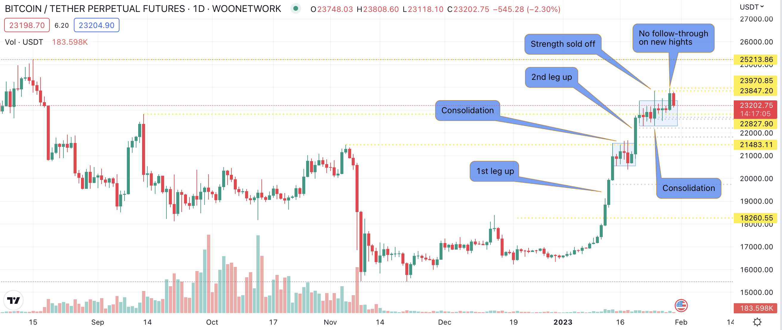 Возможно, не стоит пытаться поймать вершину. Как отмечалось на прошлой неделе, стойкий прорыв в 22,300 долларов, вероятно, даст нам долгожданный откат/разворот.