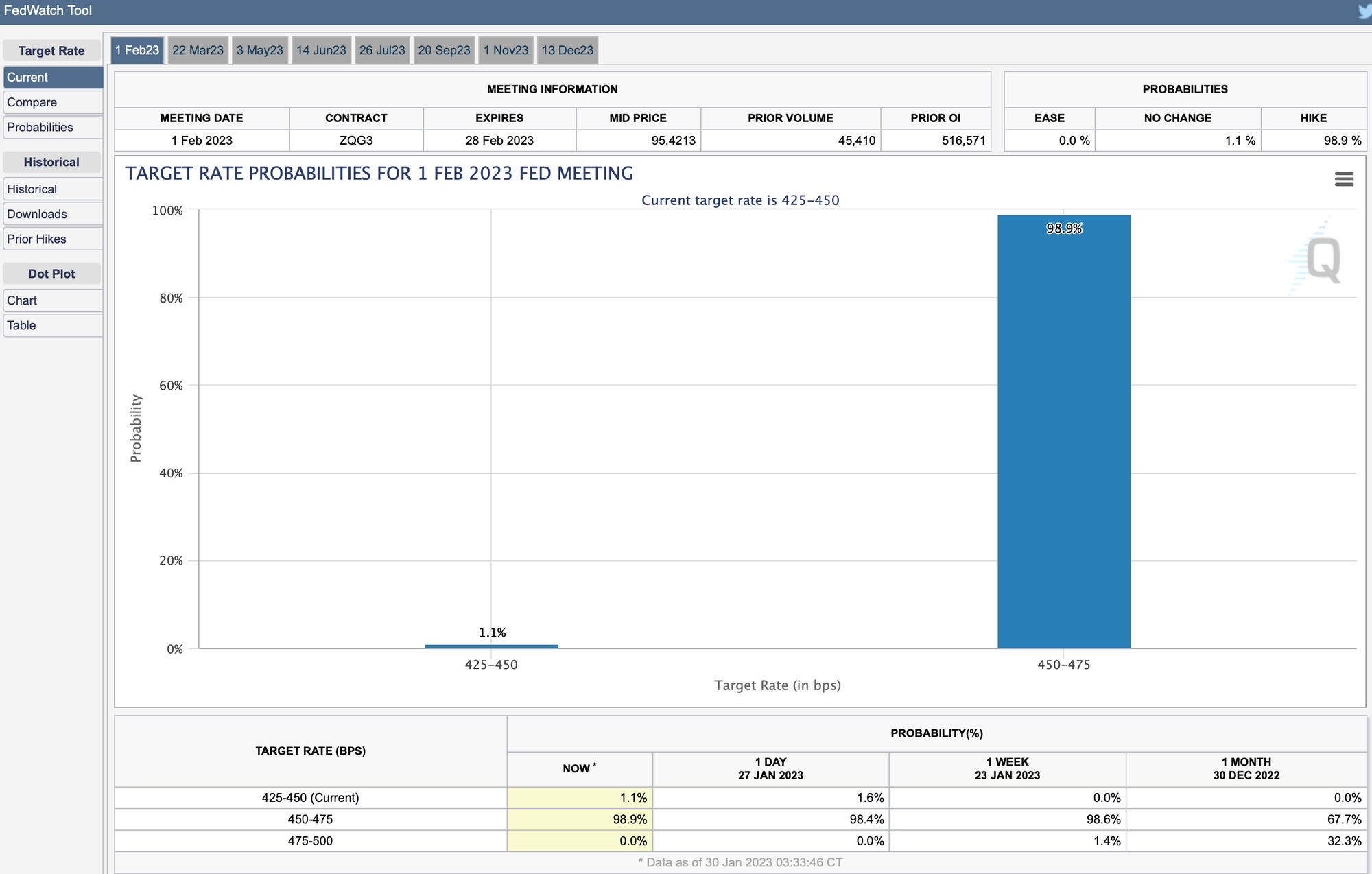 На этой неделе основное внимание будет сосредоточено на решении FOMC по ставкам и оглашению новой ставки ФРС в среду, 01 февраля. Рынок также обратит свое внимание на решение ЕЦБ по ставкам в четверг, а затем на NFP в пятницу.