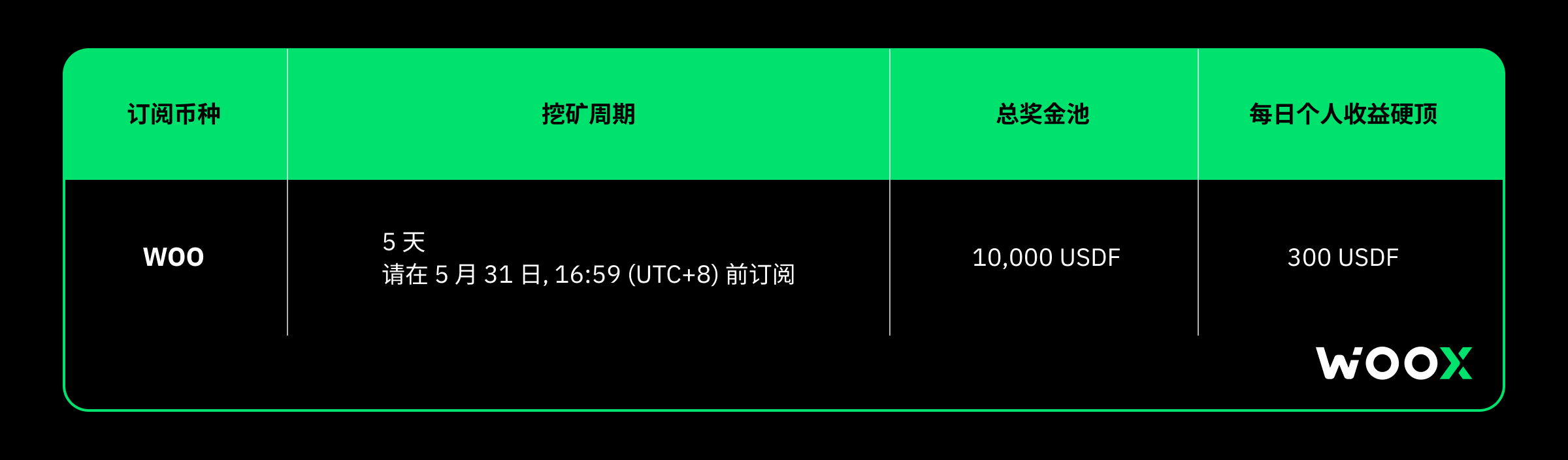 • 单个用户的订阅硬顶为 1,000,000 WOO。