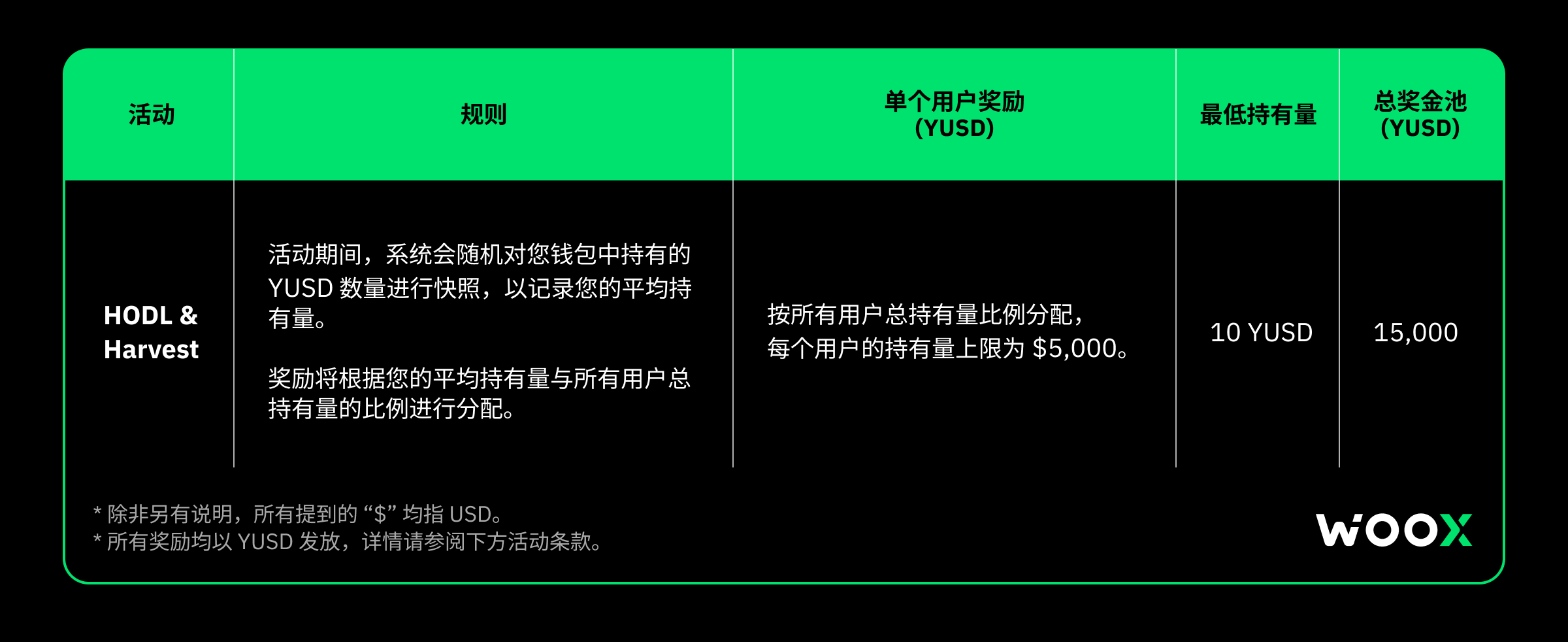 - 在活动期间将 YUSD 持有在钱包中,即可参与活动;